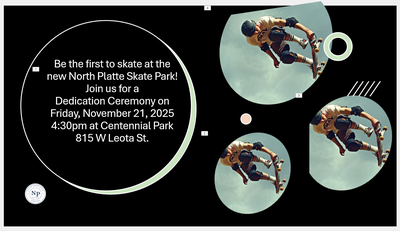 Skate Park Dedication Ceremony November 21st @ 4:30pm Centennial Park 815 W. Leota
